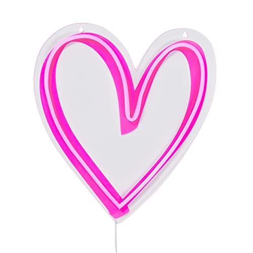 Questa insegna luminosa neon a forma di cuore con LED rosa misura 40 cm di altezza, 36,5cm di larghezza e 1,5cm di diametro