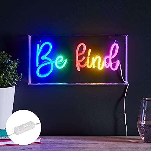 Lights4fun Insegna Luminosa Neon Be Kind con LED Multicolor per Arredo Interni
