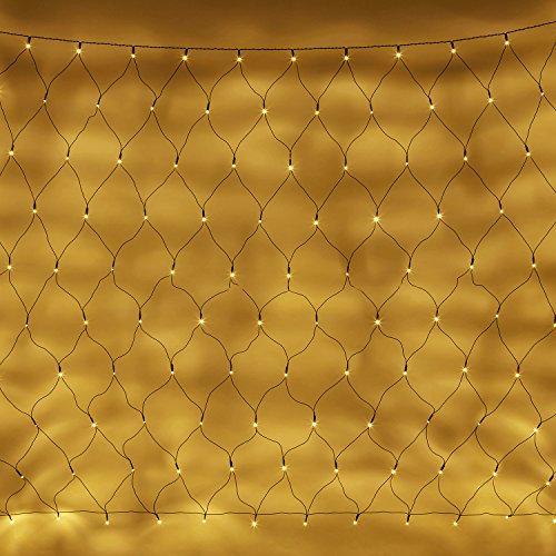 Lights4fun - Rete di Luci Prolungabile a Pile 4mx1.5m con 280 LED Bianco Caldo su Cavo Verde per Interni ed Esterni