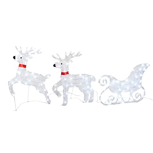 Lights4fun Duo di Renne e Slitta in Filo di Cotone con LED Bianchi per Uso in Esterni