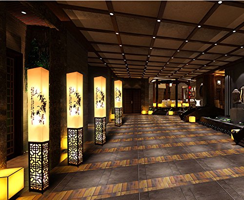 LightSei- Classico stile cinese Soggiorno Camera da letto Studio Camera Led scavato-fuori la scultura E27 ha condotto la lampada da terra in legno di 18 * 18 * 139 centimetri
