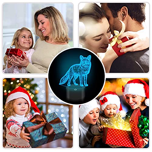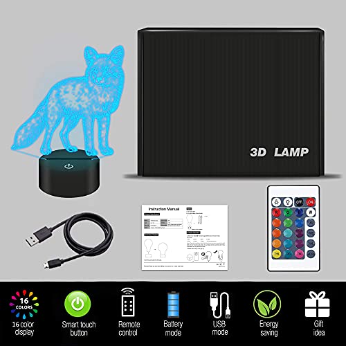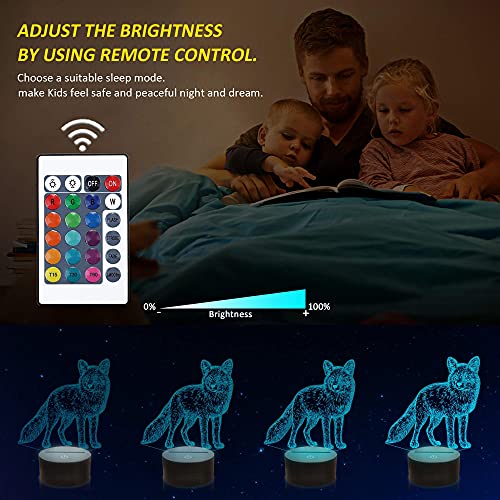 Lightzz Wolf Regali per bambine 3D Lampada a LED con illusione a forma di animale con telecomando, 16 colori che cambiano (volpe)
