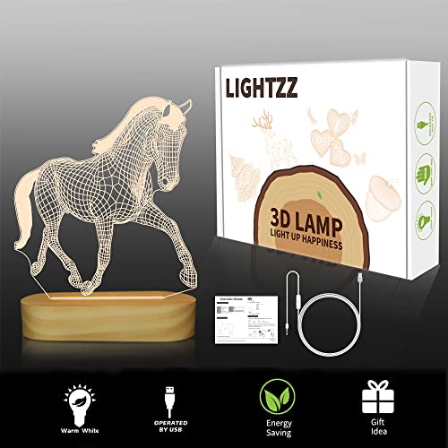 Lightzz Regalo di cavallo per ragazze e donne, lampada a illusione 3D con luce notturna a forma di cavallo con colori bianchi caldi e morbidi per la stanza dei bambini e dei ragazzi