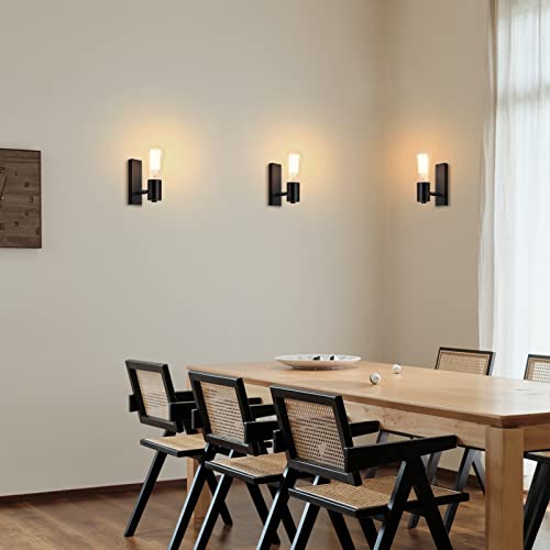 LIGKIN 2 Pezzi Lampade da Parete Industriale Applique Vintage E27 Interno Applique da parete Metallo Orientabile 360° Lampada a Muro per Scale Corridoio Soggiorno,Nero