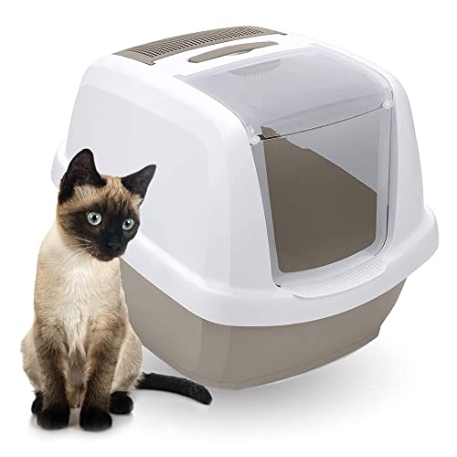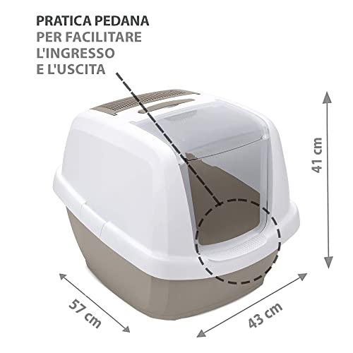 Ligo- Lettiera Gatto chiusa Lettiera per Gatti con Filtro e Paletta contenitore sabbia igienico per gatto 57x43x41h cm. BELLLA (GRIGIO TORTORA, BELLA)