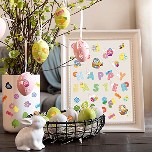 LIHAO 12 Fogli Adesivi Pasquali Autoadesivi Stickers per Bambini Modelli Uova Coniglio Fai da Te Decorazione Pasquale