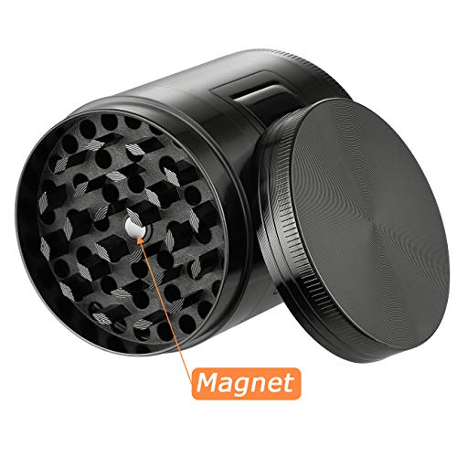 LIHAO Grinder Macinino in Lega di Zinco per Erbe Spezie in 4 Pezzi con Piccola Finestra - Nichel Nero