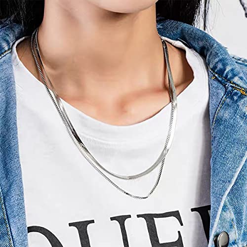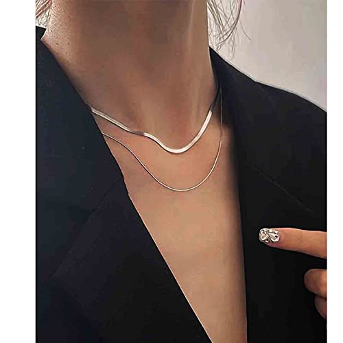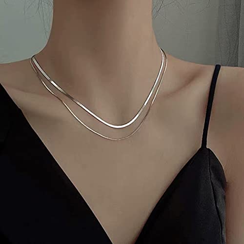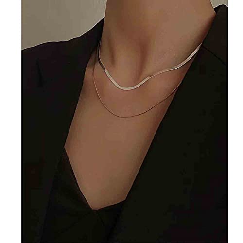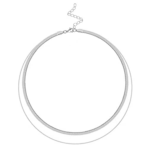 LIHELEI Collana Donna Catena Serpente, Placcato Oro 14K / Argento Sterling 925 Collana Girocollo per Donna Ragazza Gioielli con Confezione Regalo - Argento