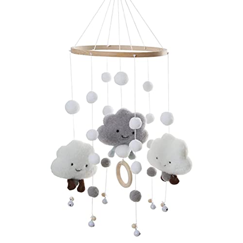 Lihuzmd Giostrina per Culla, Palla di Feltro con campanelli eolici Decorazioni da Appendere Nuvole Campana Letto sospesa Neonati la Camera dei Bambini Baby Shower,Grigio
