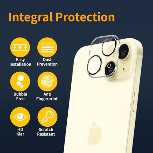Liilaa Pellicola Fotocamera Compatibile con iPhone 15/15 Plus, 3 Pezzi Vetro Temperato Protezione Lente Pellicola, Anti-graffio, Durezza 9H, HD Schermo Fotocamera Pellicola