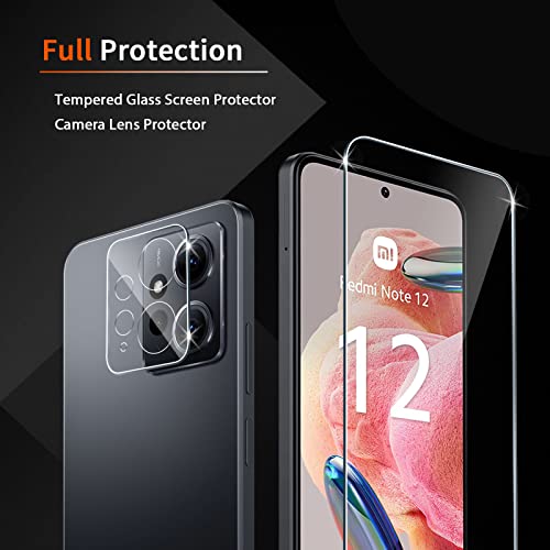 ✅【Modello Compatibile】: Includi 2 Pezzi Pellicola Protettiva e 2 Pezzi Obiettivo Fotocamera Posteriore per Xiaomi Redmi Note 12 4G. Fornisci una protezione di copertura massima.