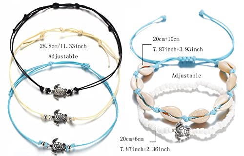 Liitata Set di 5 cavigliere a forma di tartaruga, con conchiglie, stile boho e tartaruga, realizzate a mano, in tessuto, cavigliera, con perle, regolabili, da spiaggia, per donne e ragazze