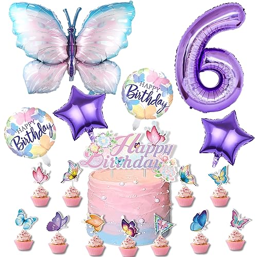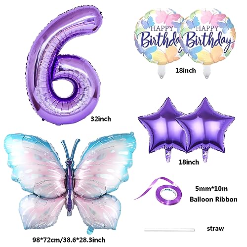 Liitata 6. Farfalla decorazione di compleanno farfalla set palloncini viola numero 6 palloncini in pellicola grande farfalla colorata palloncino Happy Birthday Butterfly palloncino per ragazze