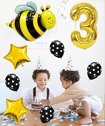 Liitata Set di 3 palloncini a forma di api per bambini, decorazione di compleanno, numero 3 palloncini in pellicola oro graziosi grandi api palloncini stella lattice per ragazze compleanni feste
