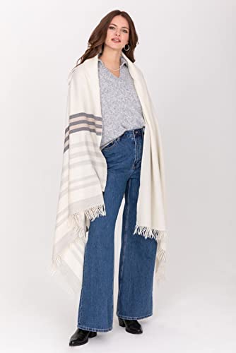 Likemary Sciarpa oversize in stile pashmina, sciarpa scialle da donna in 100% pura lana merino tessuta a mano, abbigliamento etico, motivo a strisce elegante, scialle da donna invernale crema