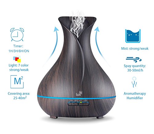 Finalmente più capacità: aroma diffusore 400 ml.Questo diffusore Led offre finalmente più capacità di riempimento.La maggior parte dei umidificatore sono progettati per soli 150 ml.Questo umidificatore può contenere 400 ml di liquido.Più volume offre una maggiore durata.Un timer consente di stabilire individualmente la durata desiderata, da 1 a 6 ore.In dotazione un misurino per un riempimento facile.