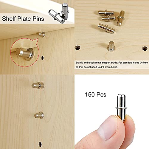 LIKERAINY Armadietto Scaffale Supporto Ø 5mm Staffe e Supporti per Ripiani Mensole Reggimensola in Legno Vetro per Armadio da Cucina Mobili Capacità di Carico 50kg (150 Pcs)