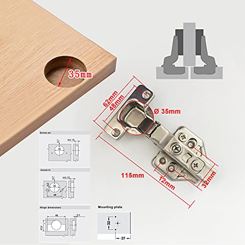 LIKERAINY 105 Grado Cerniera 35mm Mezza Battuta Esterna con Ammortizzatore Montaggio Clip on per Ante Mobili da Cucina Gabinetto Cerniere per Armadio Porta 4 Pezzi