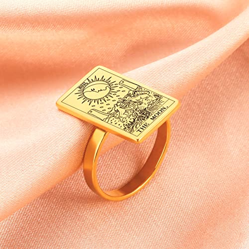 LIKGREAT Carte dei Tarocchi Anelli per Donne Ragazze Divisione Astrologia Anello Amuleto Magico Fascia Arcani Maggiori Gioielli Placcati in Oro (The Moon, 19.5)