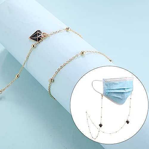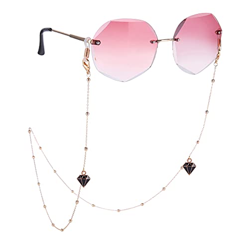 LIKGREAT Catena per Occhiali per Donne Catene a Maglie per Maschere per Il Viso Supporto per Cinturino per Occhiali da Sole Placcato in Oro (A Forma Di Diamante Nero)