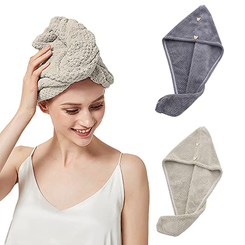 LiKing Asciugamano per Capelli Microfibra Assorbente Turbante Asciugatura Rapida con Bottoni grigio scuro grigio chiaro 2 Pezzi 5301-UN-2