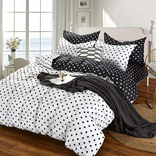 LiKing Set Copripiumino in Cotone 7 Pezzi, pois bianchi e neri Double-Face, 140x200 cm