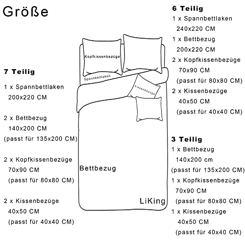LiKing Set Copripiumino in Cotone 7 Pezzi, Rosa Double-Face, 140x200 cm