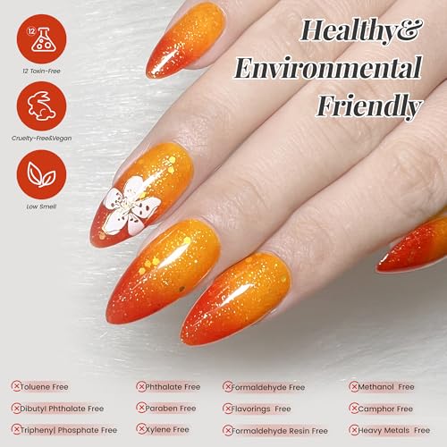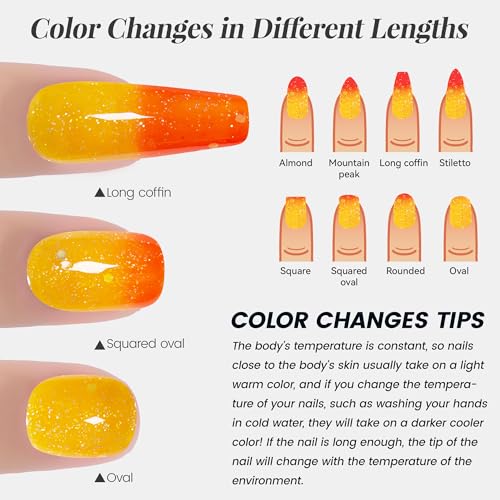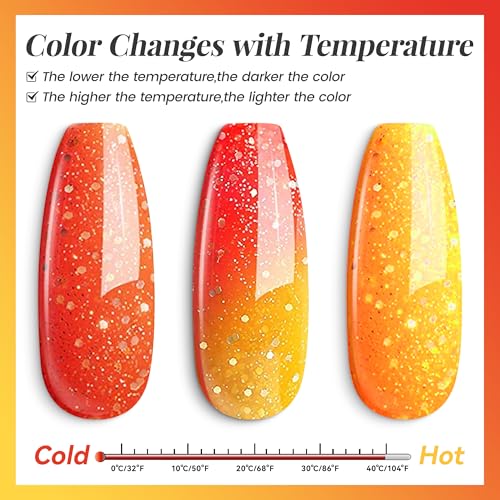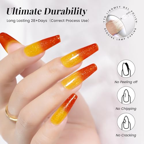 YTD Likomey Smalto Semipermanente per Unghie in gel,15ml UV LED che Cambia Colore con la Temperatura Smalti Semipermanenti per Unghie Camaleonte Manicure Gel-Arancione Giallo Glitter,WB01