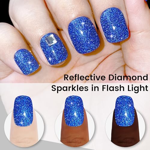 ➊【Brillantezza del diamante】Lo smalto gel contiene glitter di diamanti schiacciati e glitter di paillettes fini,una texture gel leggermente più spessa. in un ambiente buio,l'unghia mostrerà un piccolo scintillio molto luminoso e intenso attraverso la rifrazione della luce,accendi il flash del tuo telefono per scattare una foto e vedrai il piccolo scintillio incredibile!