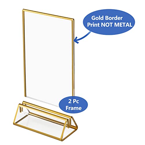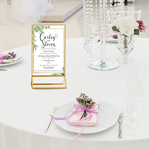 LILEZBOX 6 Pack Clear Acrylic Sign Holder with Gold Borders and Vertical Stand,Clear Easel Table Stands for Signs,for Wedding Table Number, Restaurant Sign, Photo Display, Menu Holder (4x6 inch)