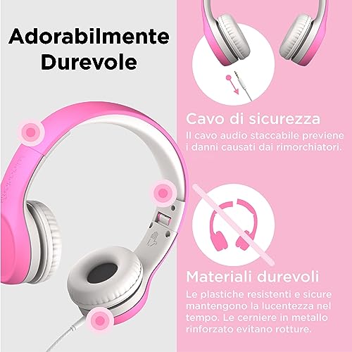 Lilgadgets Connect+ Cuffie per Ragazze per la Scuola cablate con Microfono, limitazione del Volume per Un ascolto Sicuro, Archetto Regolabile, Cuscini Comfort, Cuffie per la Scuola, Rosa