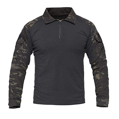 LiliChan Mens Long Sleeve tattico Militare T-Shirt di Combattimento Camicia Esterna con la Chiusura Lampo (Camuffamento Notturno, EU XL (Fit Petto: 40"-43"))