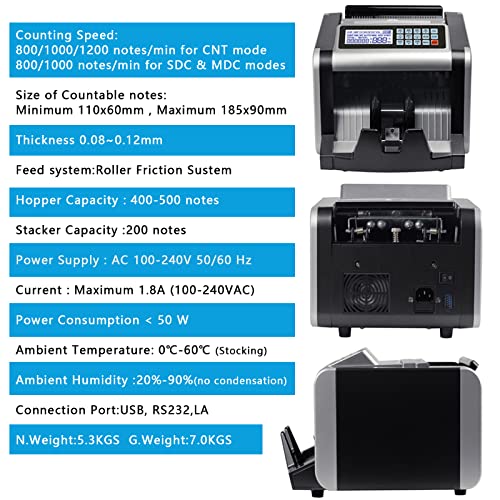 【7 modalità di conteggio tra cui scegliere】Le modalità comuni come aggiunta, conteggio e batch, ecc., Sono più convenienti e veloci per contare i soldi. In modalità aggiunta, la macchina può aggiungere più lotti insieme per darti un importo totale di fatture;