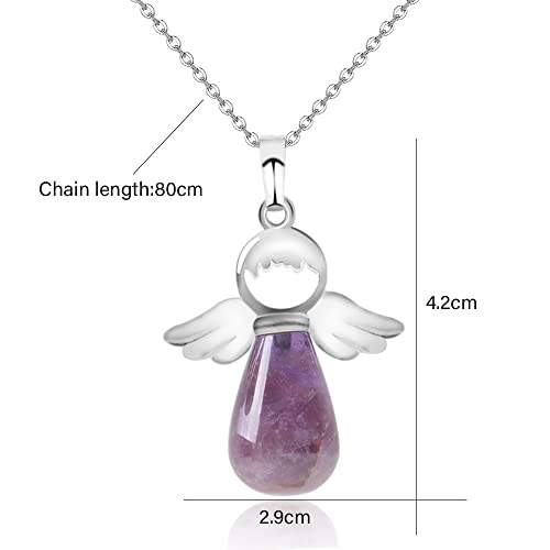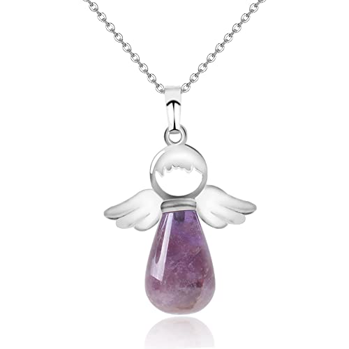 Lilingyu Collana con ciondolo angelo custode - Collana Angeli, ali d'angelo custode, Ciondolo di Cristallo Collana di Quarzo,Collana di Cristallo di Guarigione Energetica Collana (Viola)