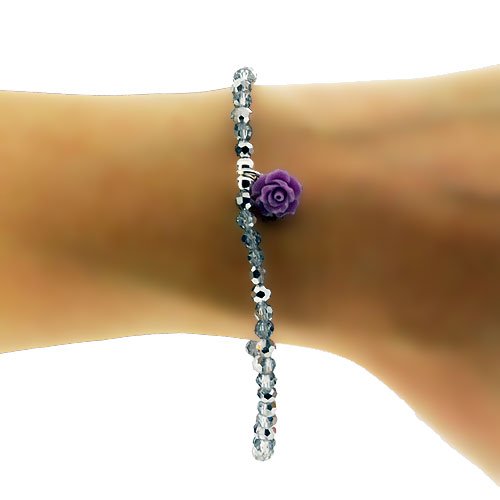 Lilla Bachelite 925 Sterling argento e cristallo di stirata del branello bracciale . Splendidamente presentato in una scatola regalo super e sacchetto di organza .