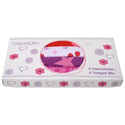 Lilly and Ben® Bavaglini bandana bambina - super assorbenti e morbidi - per dentizione - doppio strato cotone jersey e pile - foulard triangolo - bottoni regolabili ipoallergenici - 4 pezzi