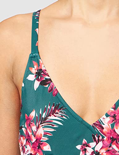 Iris & Lilly Costume da Bagno Modellante con Controllo della Pancia Donna, Verde Scuro, Tropicale, 42