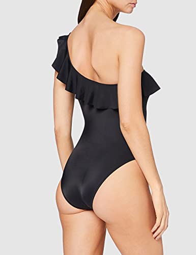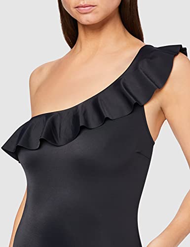 Iris & Lilly Costume da Bagno Monospalla con Volant Donna, Nero, 3XL
