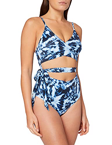 Iris & Lilly Costume da Bagno a Portafoglio Donna, Blu, Tie & Dye, 46