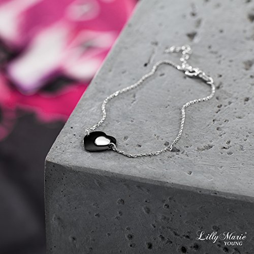 LILLY MARIE LillyMarie Donna Ragazza Braccialetto Argento vero Ciondolo nero Cuore lunghezza regolabile Sacchetto per gioielli Idee regalo per la mamma