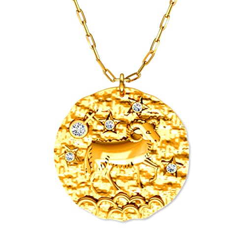 LILLY MARIE LillyMarie Donne Collana dorata Argento vero Ciondolo placcato oro portafortuna segno zodiacale Ariete lunghezza regolabile Confezione ecologica Regali per i partner