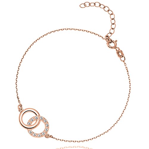 LillyMarie Donna Ragazza Bracciale Argento sterling 925 Doppio Cerchio cristalli di Swarovski Elements rosato lunghezza regolabile Sacchetto per gioielli Regalo delle donne