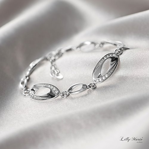 LillyMarie Donne Argento Bracciale Sterling 925 Swarovski Elements Originali Ovale Lunghezza Regolabile Monili di Nozze