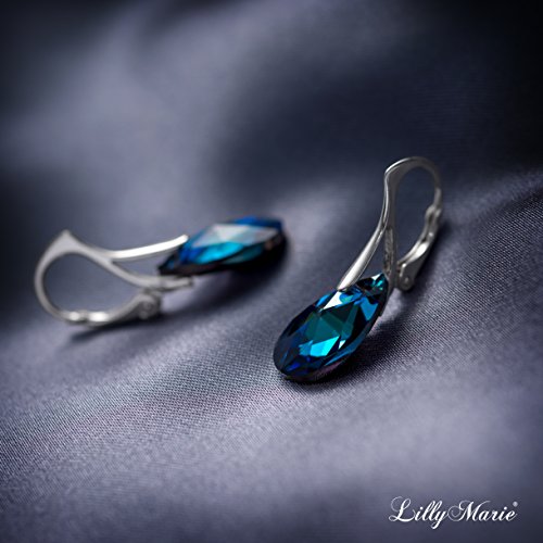 LillyMarie Donne Orecchini da donna Argento vero Blu Swarovski Elements originali Goccia Confezione regalo regalo di Natale