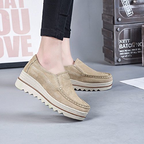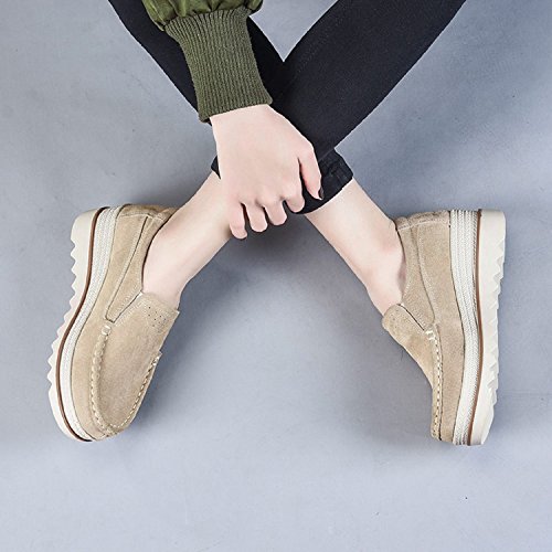 LILY999 Mocassini Donna in Pelle Scamosciata Moda Comode Loafers Scarpe da Guida con Zeppa Plateau 5cm Nero Blu Cachi(Cachi,38 EU)