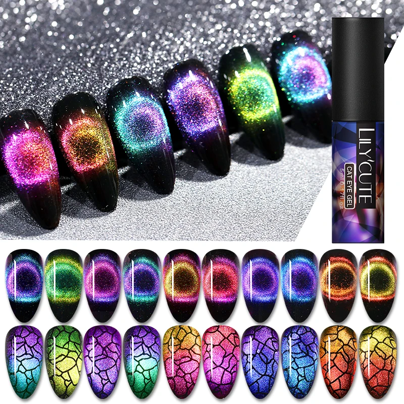 LILYCUTE 9D Cat Magnetic Chameleon Magnetic Nail Gel Polish Auroras Nails Cat Magnetic Long Lasting Soak Off UV Gel Nail Art Gel