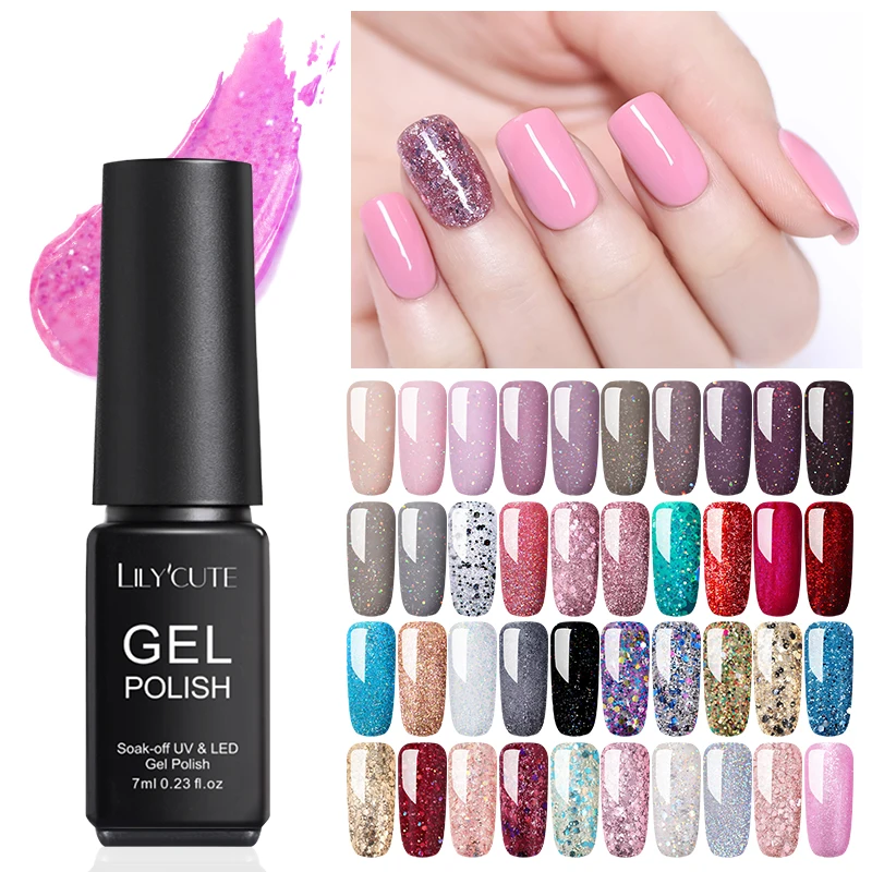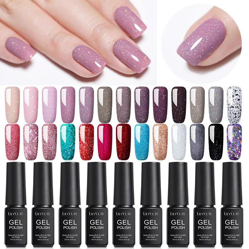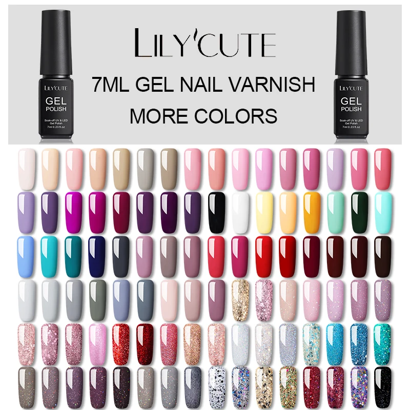 LILYCUTE 7ml Gel Polish Set UV Gel Nail Varnish Semi Permanent Base Top Coat Varnish Nail Art Gel Nail Polish Nails