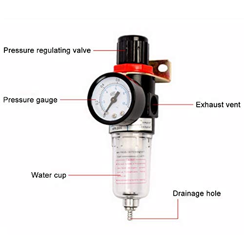 Questo regolatore del filtro dell'aria può rimuovere le particelle solide e la condensa con aria compressa e preparare l'aria correttamente per molti tipi di strumenti e attrezzature ad aria compressa.