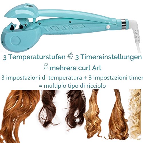 Limerence Ferro Arricciacapelli Automatico, Vapore Curling, Piastra a Vapore, Ferro Capelli, Bigodino di Capelli e Styler con Display LCD, Impostazioni Timer, Riscaldamento Rapido, Temperatura Regolabile, 2 Impostazioni Direzionali (Turquoise)