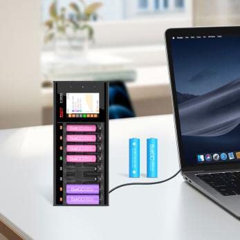 LIMETA Caricabatterie per la casa a 8 slot, caricabatterie ricaricabile con display LCD USB tipo C, caricatore veloce per batterie a carica intelligente AA AAA Li-lon LiHv Ni-MH Ni-Cd